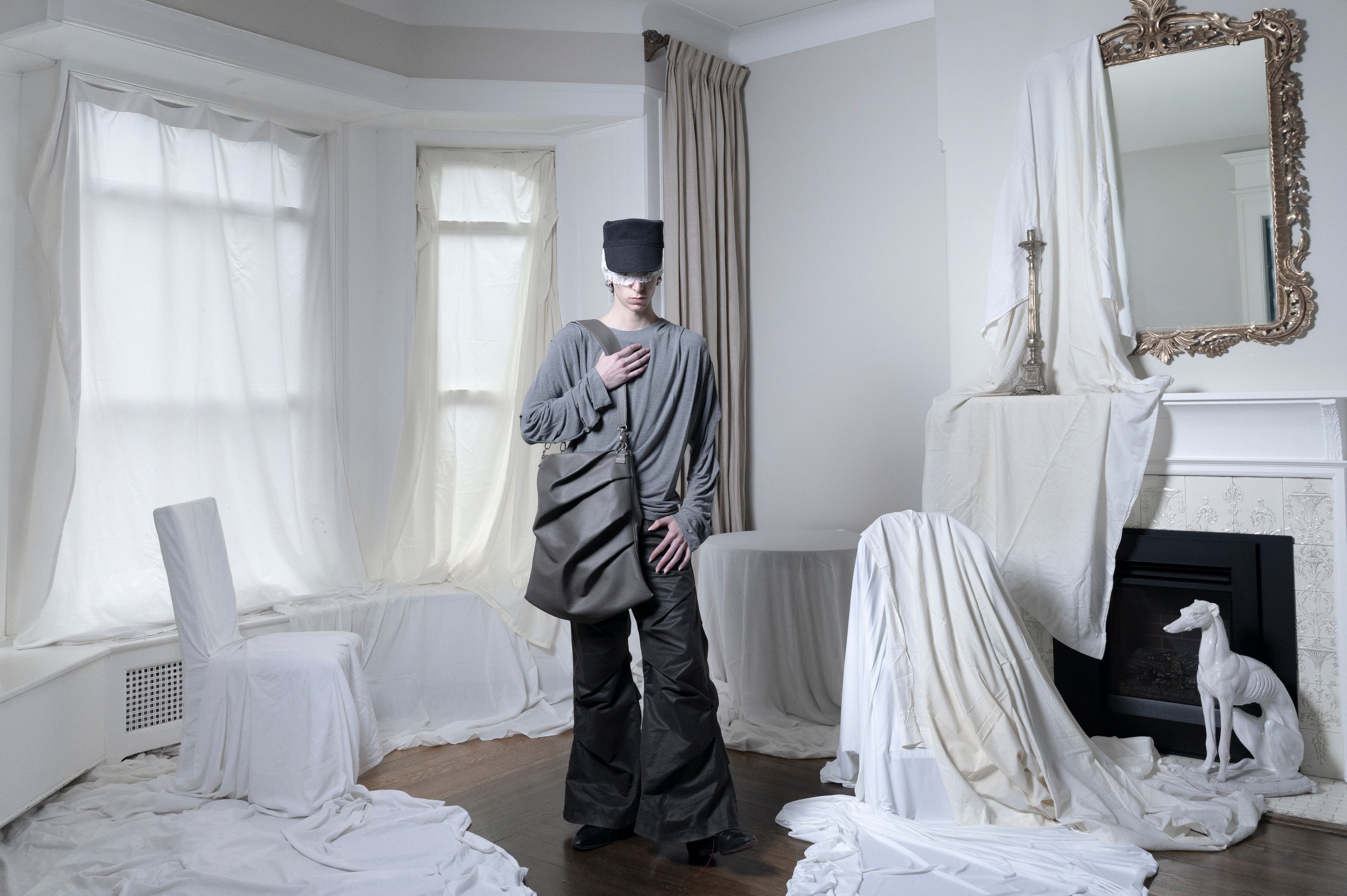 Draped leather bag - Cream
